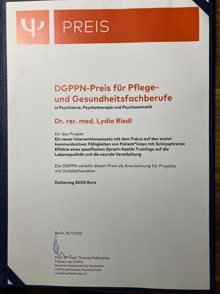 The DGPPN awards the DGPPN prize for nursing and healthcare professions in psychiatry, psychotherapy and psychosomatics, which is endowed with 5,000 euros.